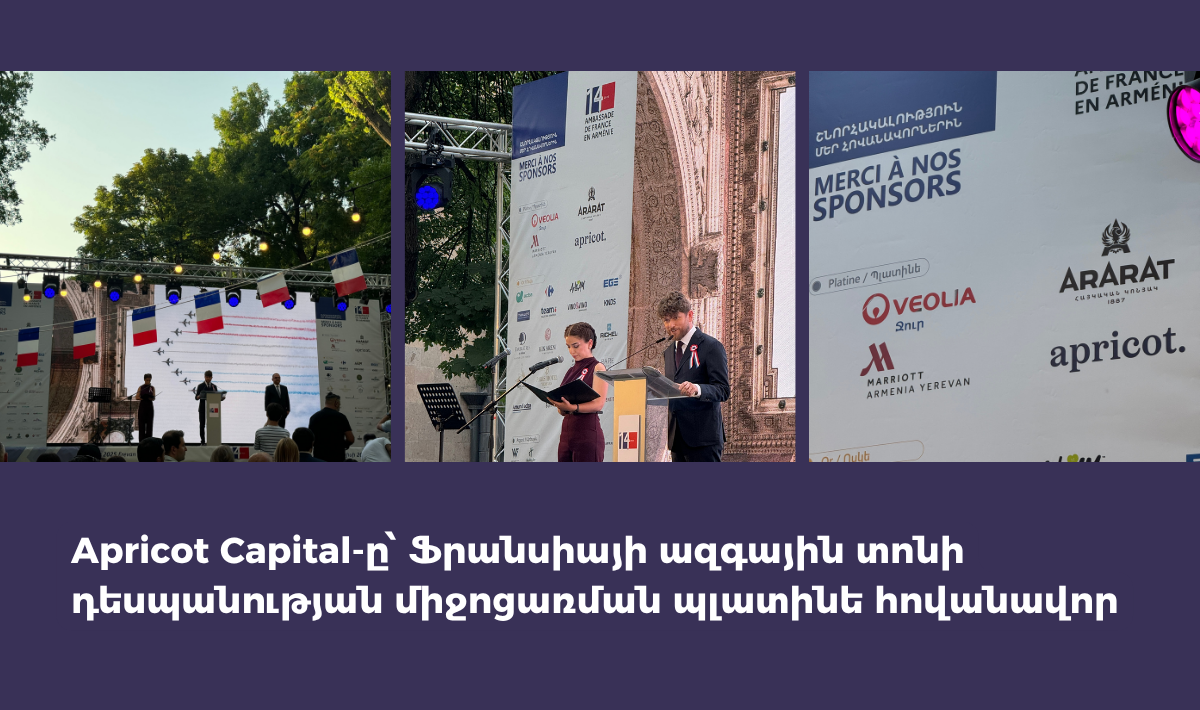 Apricot Capital-ը միացավ Հայաստանում Ֆրանսիայի դեսպանության կողմից կազմակերպված Ֆրանսիայի ազգային տոնի պաշտոնական միջոցառմանը՝ հանդես գալով որպես պլատինե հովանավոր։