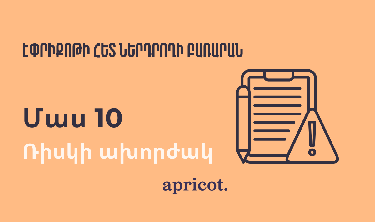 Շարունակում ենք «Էփրիքոթի հետ ներդրողի բառարան» շարքում փորձառու և սկսնակ ներդրողների համար կարճ և հասանելի ձևով ներկայացնել ոլորտի տերմինները: Այս հոդվածում կխոսենք ներդրողների համար շատ կարևոր մի հասկացության՝ ռիսկի ախորժակի մասին: Ճիշտ այնպես, ինչպես որոշ մարդիկ նախընտրում են կծու սնունդ, իսկ մյուսներն՝ առանց համեմունք, ներդրողները նույնպես ունեն ռիսկի նկատմամբ տարբեր ախորժակ։ Ձեր ռիսկի ախորժակը հասկանալը կարևոր է, որպեսզի Ձեր ներդրումները համապատասխանեն և համահունչ լինեն Ձեր ֆինանսական նպատակների հետ: