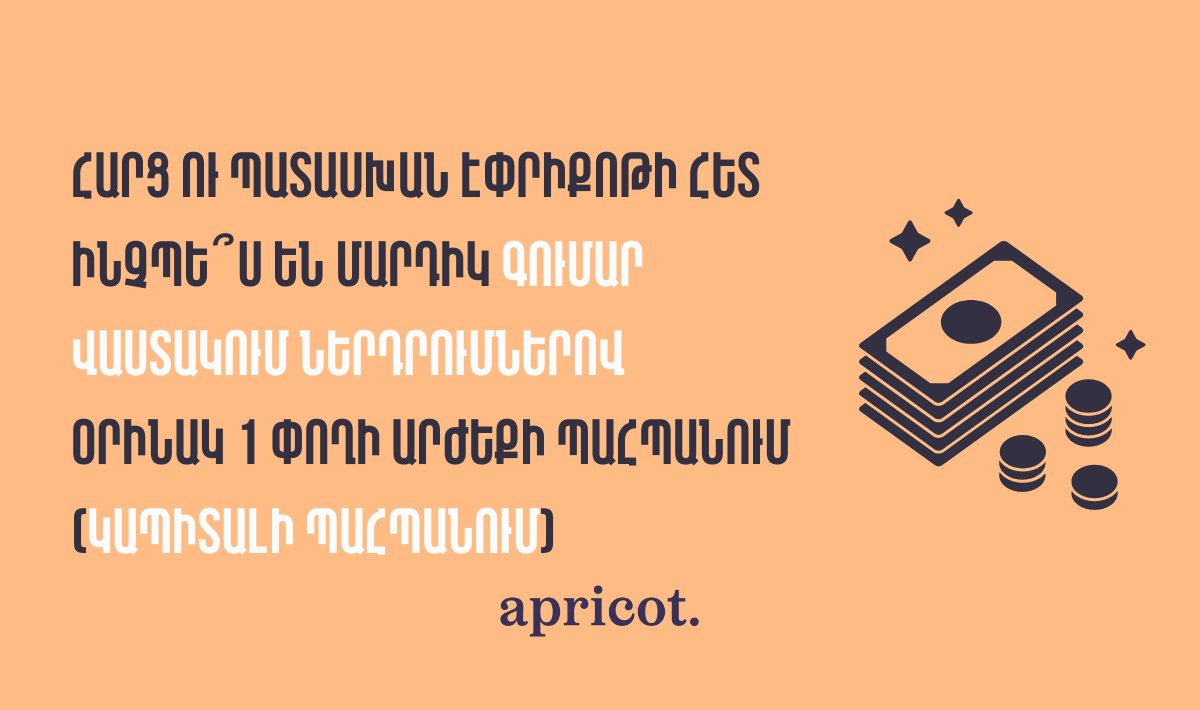 Երբևէ ինքներդ Ձեզ հարցրե՞լ եք «Բայց ինչպե՞ս են մարդիկ իրականում գումար վաստակում ներդրումներով»: Այս հարցին մեկ պատասխան չկա. ներդրումներով գումար վաստակելու եղանակը տարբեր է և կախված է ներդրողի նպատակներից: Մեր Հարց ու պատասխան Էփրիքոթի հետ շարքում կուսումնասիրենք ամենատարածված սցենարներից մի քանիսը, և թե ինչպես են մարդիկ ներդրումներ անում դրանցից յուրաքանչյուրի դեպքում: